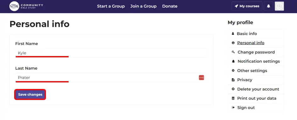6.) Fill in your first and last name and click ‘Save changes’.