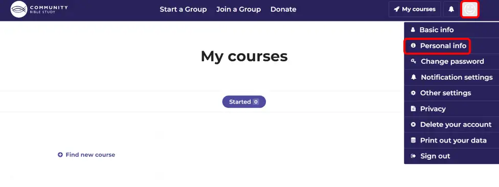 5.) Once you’ve logged back into your account, click the profile icon in top right-hand corner of the page. Then, click Personal info