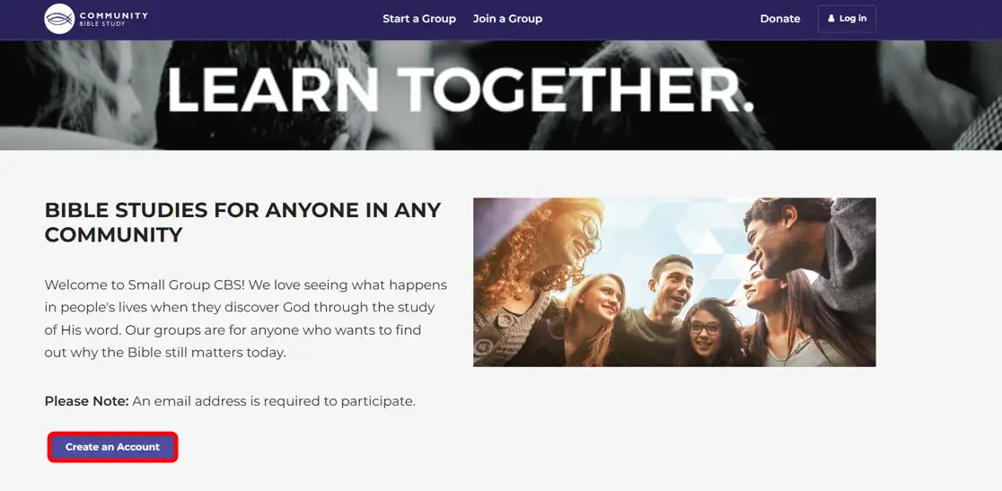 Please Note: An email address is required to create an account and participate in Small Group CBS Studies.